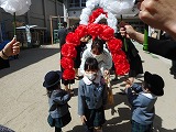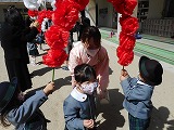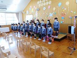 年中・年少組の憧れのすみれ組さん。小さいお友達に本当に優しくて、友達を思いやれる素敵なクラスでした。最後は預かり保育のお友達も一緒に花道を作って見送りました。