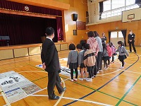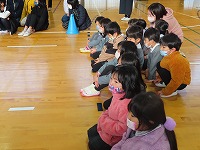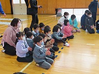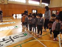 年長すみれ組が普賢寺小学校の書き初め会に参加しました。