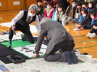 普賢寺小学校の代表のお兄さん・お姉さんの書き初めも見せてもらいました。