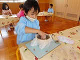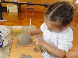 土を延ばすことからスタート!「かたい!」「あとちょっと!」まんべんなく延ばすことがなかなか難しかったです。
