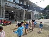 真夏日のような日が続き、どうすれば気持よく水遊びができるかな?と先生達で考え、試行錯誤して≪普賢寺幼稚園 特製シャワー≫を作りました。
