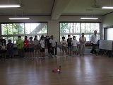 今日は、9名の地域のおじいちゃん、おばあちゃんが来てくださり、一緒にボッチャを楽しみました。