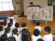 防火教室で田辺消防署の方より、安全な花火の仕方やDVD視聴を通して火事の怖さを教えていただきました。