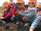 一日一日と暖かくなってきました。今日、4歳児の子どもたちが、畑にジャガイモの種芋を植えました。「どうやって ジャガイモできるのかな」「おおきなおいも できたらいいね」と、生長を楽しみにしています。
