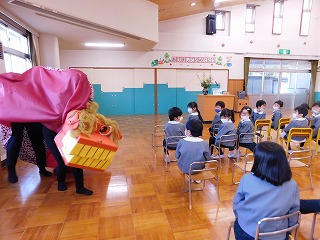 獅子舞も幼稚園にやってきて、お正月の雰囲気を楽しみました。今年も元気いっぱい健康に過ごせますように・・・。