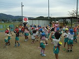 子ども達の運動会は、まだまだ続いています。休み明け、全園児が入り交じって、園庭で遊んでいます。