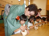 そして、お菓子を頂き、「おいしくんなあれ、おいしくなあれ・・・」と、心を込めてお茶を点てました。「おいしいな~」「きれいないろになったよ」・・・。
