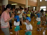 <お家の人とジャンケンゲーム>二学期が、始まり早々に保育参観。お家の人と一緒にジャンケンゲームをしました。遊びのルールを守って、子ども達もお家の人も真剣にゲーム遊びを楽しみました。