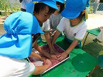 これが意外と難しい・・・「あれ、ひっかからない!」「よし、もう一回!」と何度も何度も挑戦し、釣り上げた時は「やったー!!」と大喜びでした。