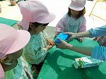 手で触ったりつぶしたりして「つめたーい!」「気持ちいい~」と感触を楽しみました。