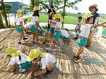 砂場の中に隠れたお宝を手で一生懸命掘って探します。