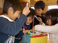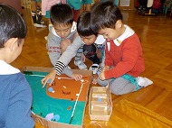 そして、培良中学校のお兄さん、お姉さんから頂いた、手作りのおもちゃで遊んだり、福引き大会!