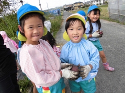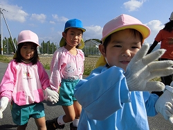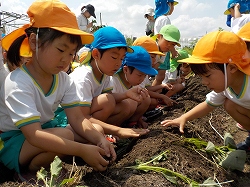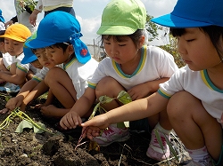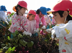 芋ほり気持ちの良い秋空の下、全園児で幼稚園の畑まで芋ほりに行ってきました。