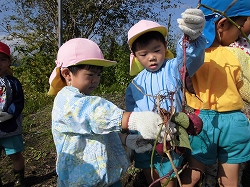 3歳児のお友だちも一生懸命にツルを引っ張ったり、掘ったりしました。