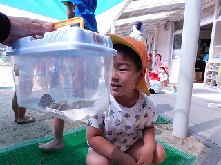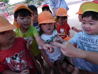 虫が大好きなばら組さんが「こうやってもつんだよ」と、教えてくれました。