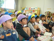 図書館の方から楽しいお話               真剣な表情の子どもたち