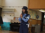 田辺署の警察官、交通安全推進委員の方に来ていただき、交通教室をしました。