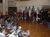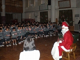各学年の歌や楽器遊びそして、お母さん達のすてきな歌声やダンスのあとに、子どもたちが心待ちにしていた、サンタクロースが鈴の音と共に登場。