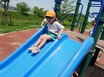 お弁当の後のお楽しみは、大きな滑り台!