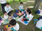 「どこにある幼稚園なの?」「同じ帽子の色だ!」と話しているうちに、一緒にお弁当を食べることになりました。