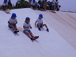 少し急な滑り台を段ボールに乗って滑りました。