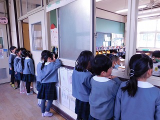 そのあとは、1年生のクラスの見学をしました。静かに勉強する姿に憧れや期待が一層膨らんだようです。