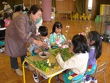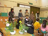 桃の花やカーネーション、マーガレットと春を感じるお花を生けました。「こっちが前」「ここにいれようかなぁ」「かわいくなったよ」と、言いながら、一人一人自分らしくお花を生けました。