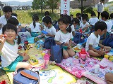 「おいしいね」「卵焼き大好き!!」・・・と、お母さんお手製のお弁当を、にこにこ顔でいただきました。おやつも食べて、大満足!!