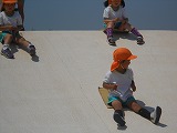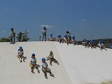 遠 足 4・5歳児の子どもたちが、近くの防賀川公園へ遠足に行きました。公園に着くと、まず大きな滑り台・・・。ダンボールのそりを使って、思う存分滑って遊びました。