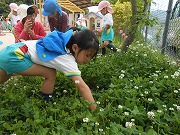 幼稚園の庭のシロツメクサ                  そーっと そーっと 気をつけて・・・