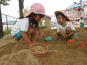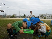 砂遊び 思わず裸足に・・・                 小学校の運動場でカエルみ~つけた!!