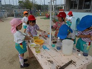 一年生も休み時間遊びに来ました                  お花のジュース できたよ