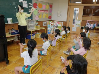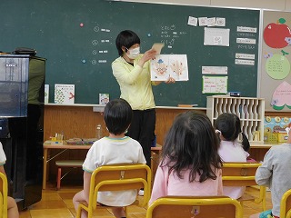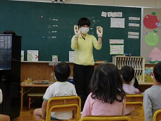 指の間や手の甲も忘れずに洗おうねと話しています。
