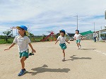 園庭や草内小学校の広い校庭では、かけっこ遊びを楽しんでいます。