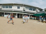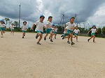 小学校の校庭で、みんなで、よーいピッ!!