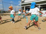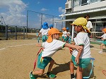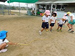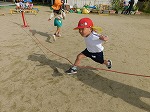 しっぽ取りでは、先生や友達と一緒に走って楽しんでいます。