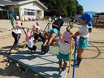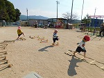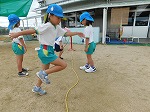 『体幹遊びコーナー』では縄をつかって『跳ぶ』動きを楽しんでいます。