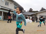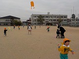 お家の方と一緒に・・・        小学校の校庭でたこ揚げ