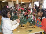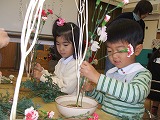 12月でもあり、クリスマスにちなんだお花を用意していただきました。「こっちを前にしよう」「ここにさすといいかなぁ」「下のほうかわいくなったよ」 完成したあとは、お花の先生から「もう一度、自分でこれでいいか見直してください」と教えていただき、自分のお花を見直したり、友達と見合う、子ども達でした。今回も、一人一人違った素敵なお花が入りました。