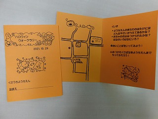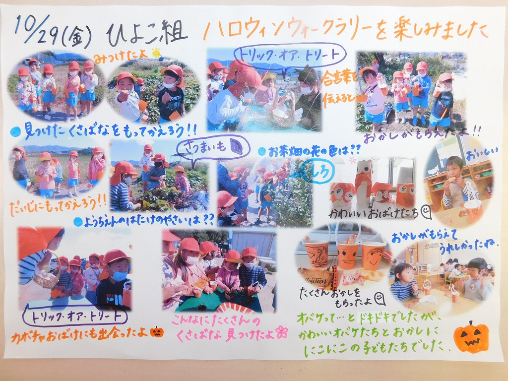 みんなで、ハッピーハロウィン♪のダンスを踊った後は、幼稚園の周りをLet's ウォークラリー!!