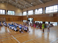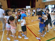 お隣の草内小学校の1年生と5歳児の子どもたちが、小学校の体育館で一緒に遊びました。