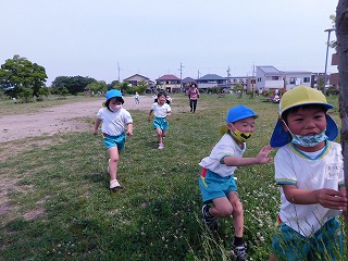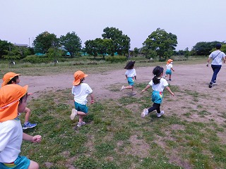 広い芝生では、♪だるまさんころんだ♪が始まりました。