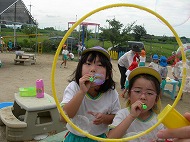 子どもたちはシャボン玉遊びをして過ごしました       「フー」