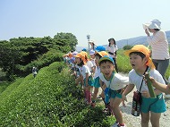 4・5歳児の子どもたちは飯岡山に行きました。お茶畑の横や堤防を通り、「やっほー!」「幼稚園が見えた~!」