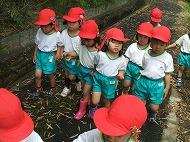 子どもたちが待ちに待った遠足。3歳児の子どもたちは、幼稚園の周りや近くの咋岡神社へ・・・。「ありさんがお散歩している!」「あっ、かめさんがいる」・・・。いろいろなものを見つけて、興味津々!