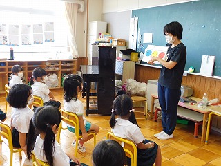 幼稚園でも、子どもたちと一緒に登降園時を思い出し、交通ルールについて話をしました。
