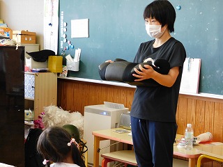 「うーん、なんだろう」「分かったヘルメット!」と気づく子どももありました。