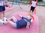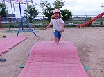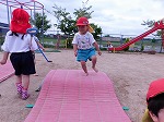 また、「ジャンプしてみたい!」「走って渡れるよ!」といろいろなマット遊びを考えて楽しんでいました。