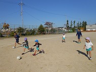 「おはよう!」            小学校の校庭で体を動かして遊びました