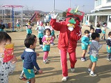 <ふくはうち おにはそと> 3日の節分をまえに、幼稚園で豆まきをしました。節分の話を聞いたあと、青鬼・赤鬼と鬼の面をかぶって鬼の役になった年長のばら組のこども達に、「おにはそと!」豆をまきました。“心の中のいろんな鬼”をやっつけ、最後にばら組のこども達が、幼稚園に鬼がこないように「おにはそと!」と元気いっぱい豆まきをしてくれました。今年も、みんな元気にすごせますように。お部屋では、福豆と鰯をいただき更に力をつけました。